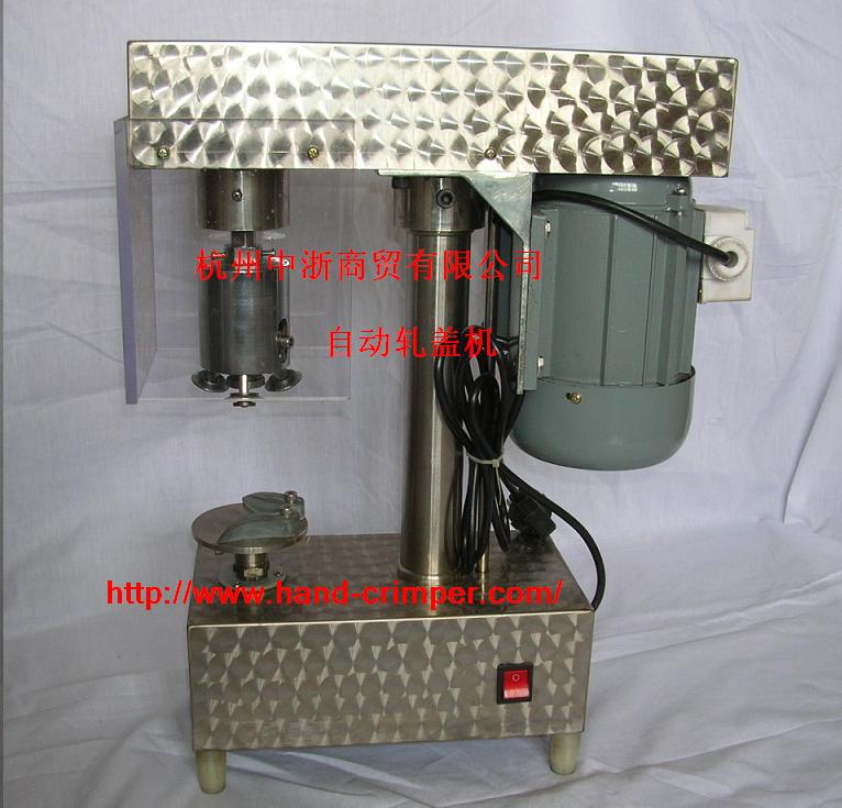 軋蓋機>本公司最新研發的臺式三刀旋風軋蓋機,其主軸、臺板以及關鍵部位全部采用不銹鋼材料,電動機選用不銹鋼罩,操作安全方便,整潔耐腐蝕易清洗,制造新穎美觀,設計合理輕巧,軋蓋刀頭系用優質鋼材加工,表面淬火處理,經久耐用。工作時,被軋蓋瓶子不轉,均布120°三只旋風刀旋轉軋蓋封口,刀柄設計為彈簧結構,三刀的距離可以微調,適應性強,所軋的瓶蓋密封性好,軋蓋成品率高。本機是科研單位、大專院校、部隊、醫院和制藥廠的理想壓蓋設備。